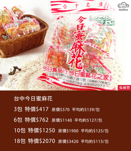 台中今日蜜麻花 3包起 - 143187 討論,推薦,開箱,CP值,熱賣,團購,便宜,優惠,介紹,排行,精選,特價,周年慶,體驗,限時