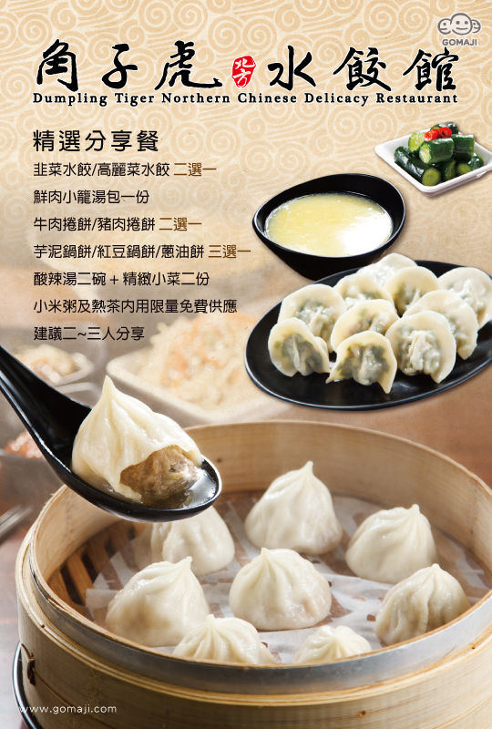 【角子虎北方水餃館】將北方精緻麵食與本土口味相結合,嚴選高品質原物料、精確把關,研發創新的產品,提供高貴不貴的美味料理!